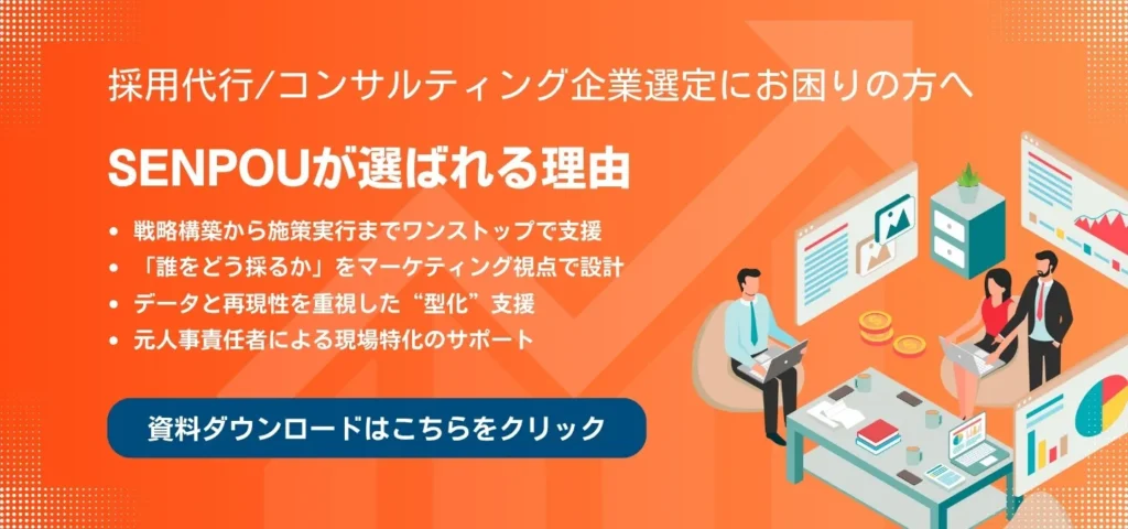 SENPOUでは、採用マーケティングの知見を活かし、戦略設計から実行までを一貫してサポートしています。